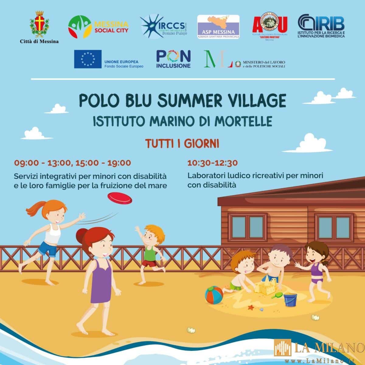 Il Comune di Messina e l’Azienda Speciale Messina Social City, in collaborazione con l’ASP in attuazione anche del progetto “Mare senza frontier”, all’IRCSS Neurolesi, all’Irib Cnr e all’Azienda Ospedaliera Policlinico Universitario “G. Martino” U. O. C. Neuropsichiatra infantile Brucaliffo percorso Autismo, promuovono il progetto Polo Blu – Summer Village rivolto a bimbi e ragazzi con disabilità e alle loro famiglie con l’obiettivo di fornire esperienze di inclusione e socializzazione finalizzate a garantire supporto alle famiglie di minori con disabilità, anche durante la stagione estiva.